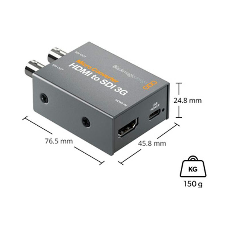 Este modelo es ideal para conectar cámaras HDMI y equipos informáticos a otros dispositivos SDI profesionales. Incluye dos salidas SDI 3G (nivel A o B) y, a diferencia de otros conversores más económicos, brinda compatibilidad con formatos cinematográficos, por ejemplo, 1080p24, 1080p47.95 y 1080p48.