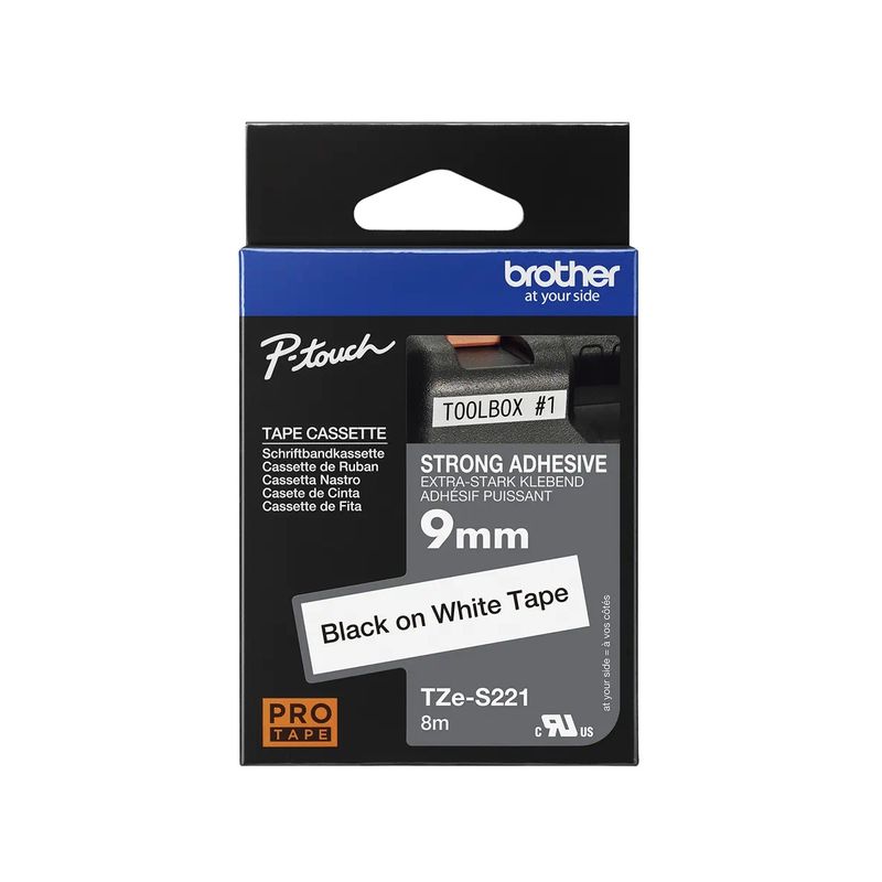 CINTA LAMINADA TZe - DOBLE ADHESIVO PARA SUPERFICIES RUGOSAS, NEGRO/BLANCO 9MM, LONGUITUD: 8 METROS